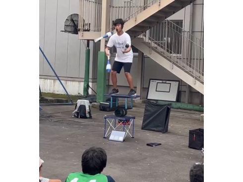 performer yumaは、国内最年少の名古屋市公認、プロの大道芸人です。3歳の頃にたまたま大道芸を見て、そこからジャグリングにハマりずっと練習をしています。今年、名古屋ポップアップアーティスト取得してプロの大道芸人としてデビュー!メインは国内トップレベルのクラブジャグリングと、バランス芸です。好きなことをずっと続ければ、いつか人を笑顔にできることを自分の大道芸で証明したくて大道芸人をしています。