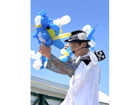 バルーンアートを軸にバランス芸やマジックなどを織り込みます。
