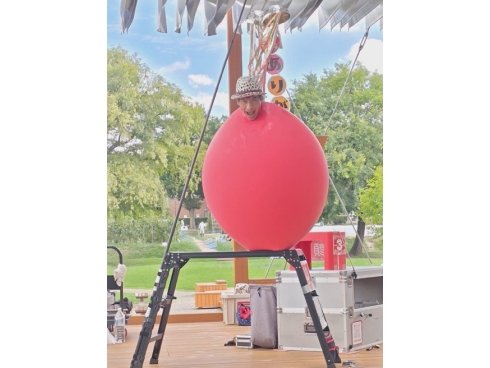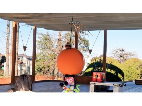 エンディング演目はジャンボバルーンの中に入って色々と挑戦します。